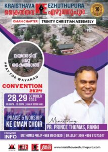 ക്രൈസ്തവ എഴുത്തുപുര ഒമാൻ ചാപ്റ്റർ കൺവൻഷനിൽ പാസ്റ്റർ പ്രിൻസ് തോമസ് റാന്നി മുഖ്യപ്രഭാഷകൻ