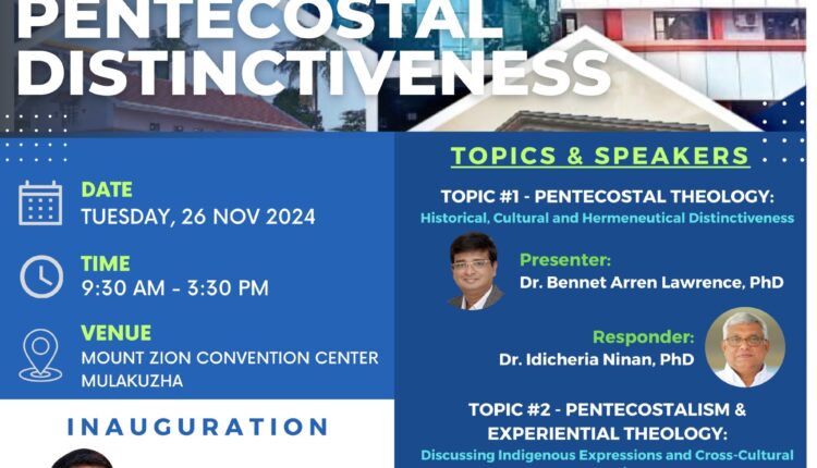 “പെന്തകോസ്ത് ദൈവശാസ്ത്രം: ചരിത്രപരവും സാംസ്കാരികവും വ്യാഖ്യാനപരവുമായ വ്യതിരിക്തത” എന്ന വിഷയത്തെ അധികരിച്ച് ഡോ. ബെന്നറ്റ് ആരൻ ലോറൻസ് പ്രബന്ധം അവതരിപ്പിക്കും.