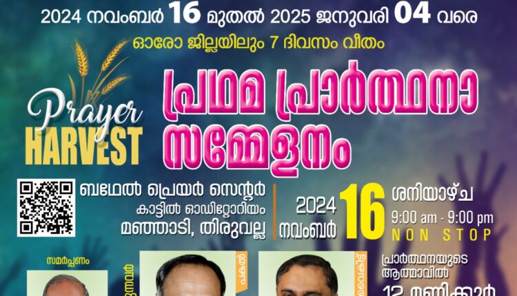നാഷണൽ പ്രെയർ മുവ്മെന്റ് 50 ദിന പ്രാർത്ഥന പ്രഥമ സമ്മേളനം തിരുവല്ലയിൽ നവംബർ 16 മുതൽ