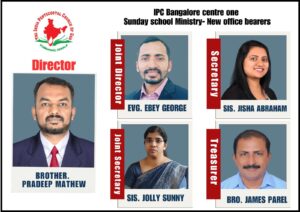 ബെംഗളൂരു: ഐ.പി.സി കർണാടക സ്റ്റേറ്റ് ബാംഗ്ലൂർ സെൻ്റർ വൺ സൺഡെസ്ക്കൂൾ 2024-25 വർഷത്തേക്കുള്ള പുതിയ ഭാരവാഹികളെ തെരഞ്ഞെടുത്തു.
