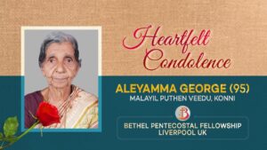 പത്തനംതിട്ട, കോന്നി: ബേഥൽ ചർച്ച് ഓഫ് ഗോഡ് (ദോഹ, ഖത്തർ) സ്ഥാപകനായ മലയിൽ ജോർജ് എബ്രാഹത്തിന്റെ മാതാവ്, എലിയമ്മ ജോർജ് (95 വയസ്സ്) (T. A. ജോർജിന്റെ പത്നി), കർത്തൃസന്നിധിയിൽ ചേർക്കപ്പെട്ടു.