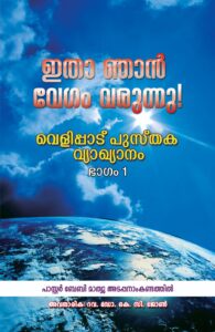 വെളിപ്പാടു പുസ്തക വ്യാഖ്യാനത്തിൻ്റെ ഒന്നാം ഭാഗത്ത് എട്ടാം അധ്യായം അഞ്ചാംവാക്യം വരെയുള്ള പഠനമാണുള്ളത്. വേദപഠിതാക്കൾക്കും അധ്യാപകർക്കും മാത്രമല്ല സാധാരണക്കാർക്കും വെളിപ്പാടു പുസ്തകം മനസ്സിലാക്കുവാൻ കഴിയുംവിധം ലളിതമായി എഴുതിയിരിക്കുന്ന ഈ ഗ്രന്ഥത്തിന് 150 രൂപയാണു വില. തപാൽ ചെലവു സഹിതം ഇപ്പോൾ 120 രൂപയ്ക്കു ലഭിക്കും.വിവരങ്ങൾക്ക്: 9447585414