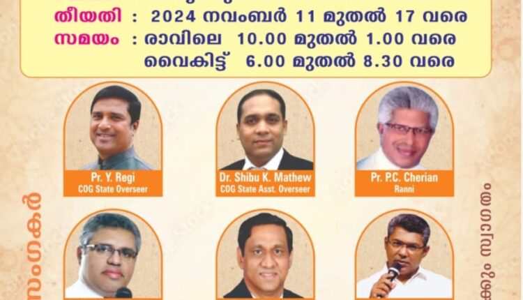 വാര്യാപുരം: ഇന്ത്യാ ദൈവസഭ കേരളാ സ്റ്റേറ്റ് വാര്യാപുരം ദൈവസഭയുടെ നേതൃത്വത്തിൽ നടക്കുന്ന ഉപവാസപ്രാർത്ഥനകൾക്ക് നാളെ മുതൽ തുടക്കമാകും.ചർച്ച് ഓഫ് ഗോഡ് കേരളാ സ്റ്റേറ്റ് ഓവർസീയർ പാസ്റ്റർ. വൈ. റെജി, അസിസ്റ്റന്റ് ഓവർസീയർ ഡോ.ഷിബു കെ മാത്യു, പാസ്റ്റർ. പി ജി മാത്യൂസ്, പാസ്റ്റർ. പി സി ചെറിയാൻ, പാസ്റ്റർ വർഗീസ് ഏബ്രഹാം (രാജു മേത്ര), പാസ്റ്റർ.ബി മോനച്ചൻ, പാസ്റ്റർ.റെജി ശാസ്ത്രാംകോട്ട, പാസ്റ്റർ.പി എസ് ജോർജ്ജ് (ബാംഗ്ലൂർ), പാസ്റ്റർ.കുര്യൻ മാത്യു (സന്തോഷ്) തുടങ്ങിയവർ വചനശുശ്രൂഷകൾ നിർവഹിക്കും. 17ന് സമാപിക്കുന്ന യോഗങ്ങൾ പകൽ സമയം രാവിലെ 10മണി മുതലും, വൈകുന്നേരം 6മണി മുതൽ സഭാഹോളിലാണ് ക്രമീകരിച്ചിരിക്കുന്നത്. സഭാശുശ്രൂഷകനും ദൈവസഭ പത്തനംതിട്ട സെന്റർ മിനിസ്റ്ററുമായ പാസ്റ്റർ. അനിയൻകുഞ്ഞ് സാമുവേൽ യോഗങ്ങൾക്ക് നേതൃത്വം നൽകും.