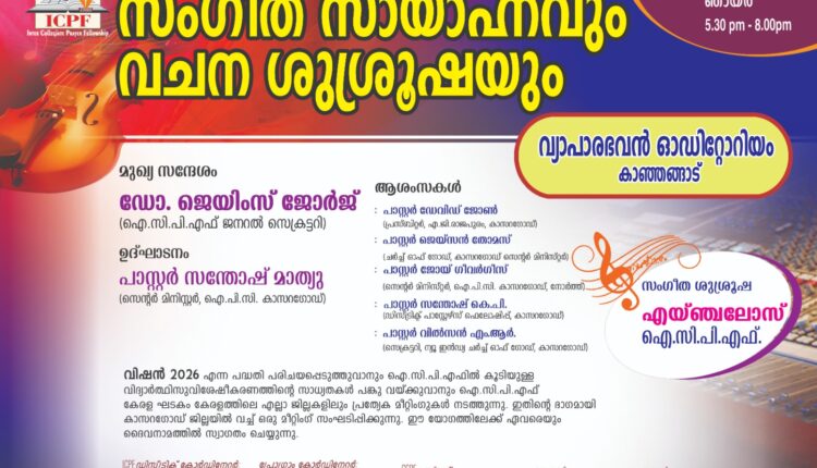 ഐസിപിഎഫ് കാസർഗോഡ് ജില്ല സംഗീത സായാഹ്നവും വചന ശുശ്രൂഷയും നവംബർ 17 ന്