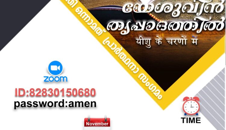 പ്രാർത്ഥനാ സംഗമം നവംബർ 23ന് നാളെ രാത്രി 7.30ന് (ഇന്ത്യൻ സമയം) ഓൺലൈനിൽ നടക്കും.