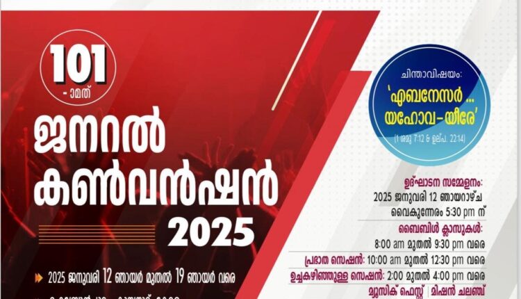 2025 ജനുവരി 12-ന് വൈകിട്ട് 5.30-ന് ആരംഭിക്കുന്ന ഈ മഹാസമ്മേളനം ജനറല് പ്രസിഡണ്ട് ഡോ. വല്സന് ഏബ്രഹാം ഉദ്ഘാടനം ചെയ്യും. എല്ലാ ദിവസവും രാവിലെ ബൈബിള് ക്ലാസുകള്, പ്രഭാത സെഷന്, ഉച്ചകഴിഞ്ഞുള്ള സെഷന്, മ്യൂസിക് ഫെസ്റ്റ്, മിഷന് ചലഞ്ച്, വിമന്സ് ഫെലോഷിപ് മീറ്റിങ്ങുകള്, യുവജനങ്ങള്ക്കു വേണ്ടിയുള്ള മീറ്റിങ്ങുകള് എന്നിവ നടക്കും. രാത്രി മീറ്റിംഗുകള് പൊതുമീറ്റിംഗുകള് ആയിരിക്കും. 19-ാം തീയതി ഞായറാഴ്ച രാവിലെ വിശുദ്ധ സഭായോഗം, കര്ത്തൃമേശയോടെ ആരംഭിക്കും. ഇന്ത്യയുടെ എല്ലാ സ്റ്റേറ്റുകളില് നിന്നും വിദേശത്തുനിന്നും ആയിരക്കണക്കിന് വിശ്വാസികള് പങ്കെടുക്കും.
