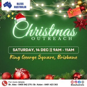 Brisbane, Australia: Bless Australia Brisbane Team will be conducting Christmas Outreach on Saturday, 14th Dec at 9 am at King George Square in Brisbane, Australia. Please contact the numbers on the flyer for more details.