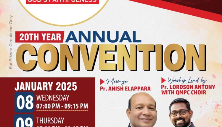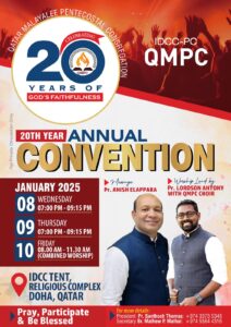 ഖത്തർ മലയാളി പെന്തെക്കോസ്ത്തൽ കോൺഗ്രിഗേഷൻ (QMPC) ഇരുപതാം വാർഷിക കൺവൻഷൻ ഇന്ന് മുതൽ