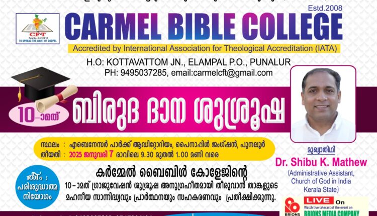 കര്മ്മേല് ബെെബിള് കോളേജിന്റെ 10 -ാമതു ഗ്രാജുവേഷന് ജനുവരി 7 മുതൽ