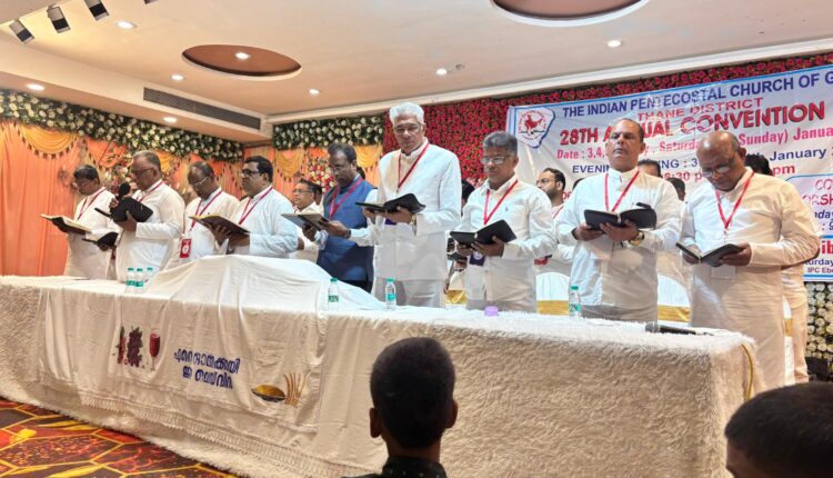 താനെ: ഐപിസി മഹാരാഷ്ട്ര സ്റ്റേറ്റ്, താനെ ഡിസ്ട്രിക്ട് 28-)o വാർഷിക കൺവെൻഷൻ കല്യാൺ വെസ്റ്റ് റെയിൽവേ സ്റ്റേഷനു സമീപമുള്ള ശ്രീ ദാമോദരാചാര്യ ഹാളിൽ വെച്ച് അനുഗ്രഹീതമായി സമാപിച്ചു. ജനുവരി 3 വെള്ളിയാഴ്ച വൈകുന്നേരം ഡിസ്ട്രിക്ട് മിനിസ്റ്ററും ഐപിസി മഹാരാഷ്ട്ര സ്റ്റേറ്റ് വൈസ് പ്രസിഡന്റുമായ പാസ്റ്റർ കെ എം വർഗ്ഗീസ് പ്രാർത്ഥിച്ചു ഉദ്ഘാടനം ചെയ്ത കൺവെൻഷനിൽ റവ. ഡോ. ബിജു ചാക്കോ (പ്രിൻസിപ്പാൾ, ന്യൂ തീയോളോജിക്കൽ കോളേജ് ടെഹ്റാഡൂൺ) മുഖ്യ പ്രാസംഗികൻ ആയിരുന്നു. ഇവാ. വി സി ജസ്റ്റിൻ പ്രസംഗം ഹിന്ദിയിലേക്ക് പരിഭാഷപ്പെടുത്തി.
