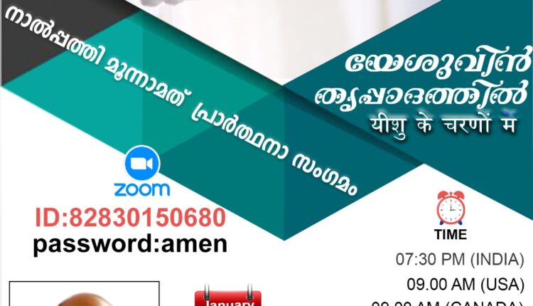 യേശുവിൻ തൃപ്പാദത്തിൽ: 43 മത് പ്രാർത്ഥനാ സംഗമം ജനുവരി 18 ശനിയാഴ്ച