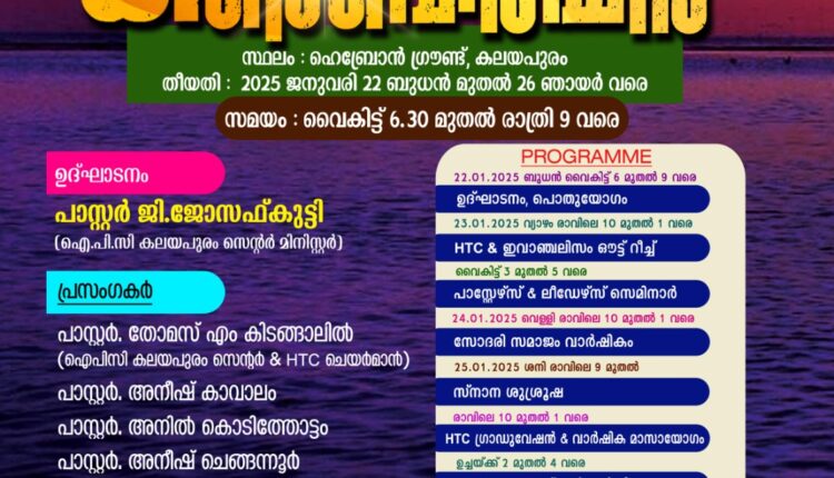 ഐ.പി.സി കലയപുരം സെന്റർ കൺവൻഷൻ ജനുവരി 22 മുതൽ