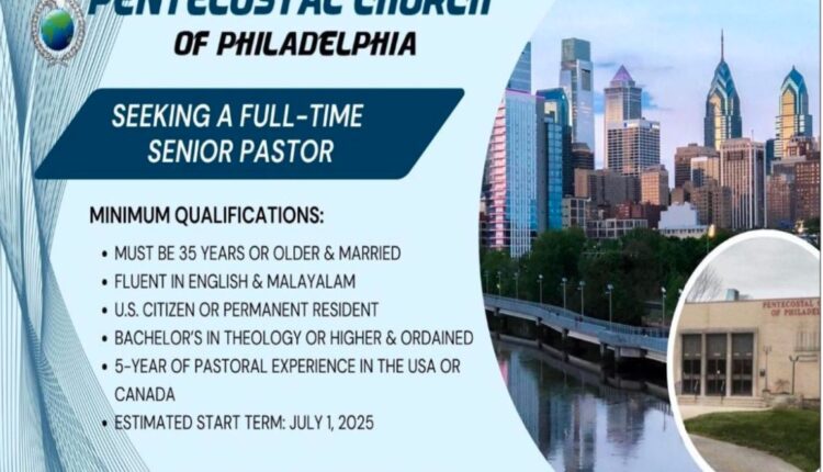 The Pentecostal Church in Philadelphia, USA, is in need of a senior pastor. A minimum of a bachelor’s degree or higher in English or a related field is required. Applicants must be U.S. citizens or permanent residents over the age of 35. Those with five years of ministry in the United States or Canada can contact