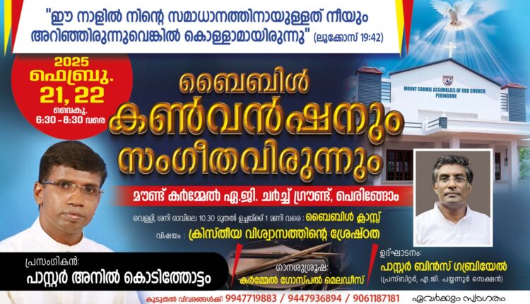 പെരിങ്ങോം മൗണ്ട് കർമ്മേൽ ഏ.ജി ചർച്ച് കൺവൻഷൻ ഫെബ്രുവരി 21 മുതൽ