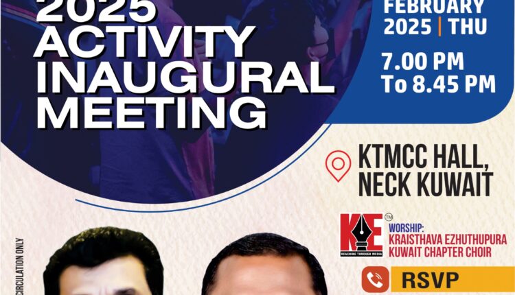 നാഷണൽ ഇവാഞ്ചലിക്കൽ ചർച്ച് KTMCC ഹാളിൽ വച്ച് നടക്കുന്ന ചടങ്ങിൽ റവ. ഷിബു മാത്യു ഉദ്ഘാടനം നിർവഹിക്കും. മുഖ്യാതിഥിയായി ബ്രദർ ഫിലിപ്പ് കോശി (ജി.എം., അൽ മുല്ല എക്സ്ചേഞ്ച്, കുവൈറ്റ്) പങ്കെടുക്കും. ക്രൈസ്തവ എഴുത്തുപുര കുവൈറ്റ് ചാപ്റ്റർ Choir ഗാനശുശ്രൂഷക്ക് നേതൃത്വം നൽകും.
