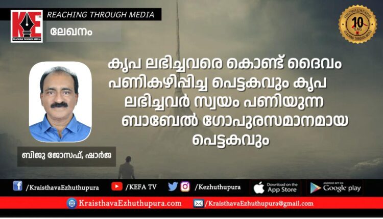 ലേഖനം: കൃപ ലഭിച്ചവരെ കൊണ്ട് ദൈവം പണികഴിപ്പിച്ച പെട്ടകവും കൃപ ലഭിച്ചവർ സ്വയം പണിയുന്ന ബാബേൽ ഗോപുരസമാനമായ പെട്ടകവും | ബിജു ജോസഫ്, ഷാർജ