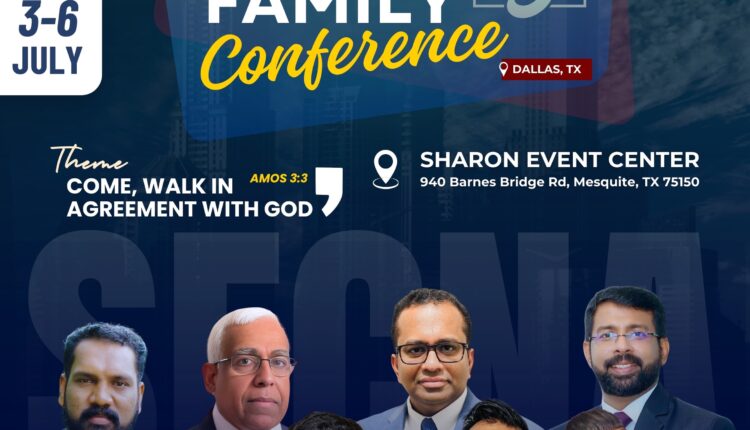 ഡാളസ്, ടെക്സാസ്: ശാരോൻ ഫെല്ലോഷിപ്പ് ചർച്ചസ് ഓഫ് നോർത്ത് അമേരിക്ക (SFCNA) 19മത് ഫാമിലി കോൺഫറൻസ് 2025 ജൂലൈ 3 മുതൽ 6 വരെ ഡാളസിലെ ശാരോൻ ഇവന്റ് സെന്ററിൽ (940 ബാർണസ് ബ്രിഡ്ജ് റോഡ്, മെസ്ക്വൈറ്റ്, TX 75150) നടക്കും.“വരുവിൻ, നമുക്ക് ദൈവവുമായി ഒരുമയിൽ നടക്കാം” (ആമോസ് 3:3) എന്നുള്ളതാണ് കോൺഫറൻസ് തീം. കോൺഫറൻസിന്റെ വിവിധ സെഷനുകളിൽ റവ . ജോ തോമസ് (ബെംഗളൂരു), റവ. സജോ തോണികുഴിയിൽ, റവ. ജോൺ തോമസ് (SFC ഇന്റർനാഷണൽ സെക്രട്ടറി), റവ. ഡോ. റ്റിങ്കു തോംസൺ (പ്രസിഡന്റ്, SFCNA ) ഡോ. അനു കെനത്ത് (ജർമ്മനി), ഡോ. നിരൂപ് ആൽഫോൺസ് (കോളറാഡോ) എന്നിവർ ദൈവവചനം ശുശ്രുഷിക്കുന്നതായിരിക്കും. ഡോ. ബ്ലെസ്സൺ മേമന (യു. കെ), റവ. ദിലിപ് കുര്യൻ (ചിക്കാഗോ) എന്നിവർ ഗാനശുശ്രുഷകൾക്കു നേതൃതം നൽകും. കഴിഞ്ഞ ഒക്ലഹോമ കോൺഫെറെൻസിൽ അനേക കുഞ്ഞുങ്ങളെ ക്രിസ്തുവിലേക്ക് നയിച്ച റോബർട്ട് & ജാൻ ടീൽ ഈ കോൺഫറെൻസിലും കുഞ്ഞുങ്ങളുടെ മിനിസ്ട്രിക്ക് നേതൃത്വം നൽകുന്നു. കോൺഫറൻസിന്റെ പ്രവർത്തനങ്ങൾ ഏകോപിക്കുന്നതിനായ് നാഷണൽ കമ്മിറ്റിയും, ലോക്കൽ കമ്മിറ്റിയും, SFCNA എക്സിക്യൂട്ടിവ് ബോർഡും പ്രവർത്തിച്ചു വരുന്നു.