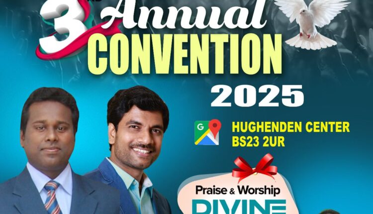 ബ്രിസ്റ്റോൾ: ഡിവൈൻ ക്രിസ്ത്യൻ ചർച്ച്, വെസ്റ്റൺ സൂപ്പർ മെർ, ബ്രിസ്റ്റോൾ ആഭിമുഖ്യത്തിൽ 3-ാമത് വാർഷിക കൺവെൻഷൻ ഫെബ്രുവരി 14,15,16 തീയ്യതികളിൽ ഹ്യൂഗെൻണ്ടെൻ സെന്ററിൽ വെച്ച് നടക്കും.
