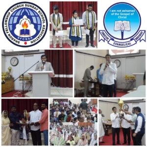 റീജിയൻ സി ഇ എം ടാലൻ്റ് ടെസ്റ്റ് വിജയികൾക്കുള്ള സമ്മാന ദാനവും സണ്ടേസ്ക്കൂൾ പരീക്ഷാ റാങ്ക് ജേതാക്കൾക്കുള്ള സമ്മാന ദാനവും സർട്ടിഫിക്കറ്റ് വിതരണവും പഠനം പൂർത്തീകരിച്ചവരുടെ ഗ്രാജുവേഷനും നടന്നു. പാസ്റ്റർ ഡോ.ഷിബു വർഗീസ് ഗ്രാജുവേഷൻ സന്ദേശം നൽകി. പാസ്റ്റർ ജോൺസൻ ബേബി,പാസ്റ്റർ സാം കോശി,പാസ്റ്റർ ഗിൽബെർട്ട് ജോർജ്, പാസ്റ്റർ തോമസ് വർഗീസ്,പാസ്റ്റർ ബിജി ഫിലിപ്,ബ്രദർ ബിജു തോമസ്, ബ്രദർ എബ്രഹാം വർഗീസ്,ബ്രദർ ഷിബു ജോർജ്, ബ്രദർ ബെൻസ് മാത്യു,ബ്രദർ സാം പി മത്തായി തുടങ്ങിയവർ സമ്മാനദാനം നിർവഹിച്ചു. സണ്ടേസ്കൂൾ എക്സാം ഇൻവിജിലേറ്റേഴ്സായി പ്രവർത്തിച്ച 21 പേർക്ക് പ്രത്യേക അനുമോദനം നൽകി. എസ് എഫ് സി ക്രൈസ്റ്റ് ചർച്ച് ജബൽ അലി റീജിയൻ സി ഇ എം ടാലൻ്റ് പരിശോധനയിൽ ഏറ്റവും കൂടുതൽ പോയിന്റ് നേടിയതിനുള്ള ചാമ്പ്യൻഷിപ് ട്രോഫി കരസ്ഥമാക്കി.