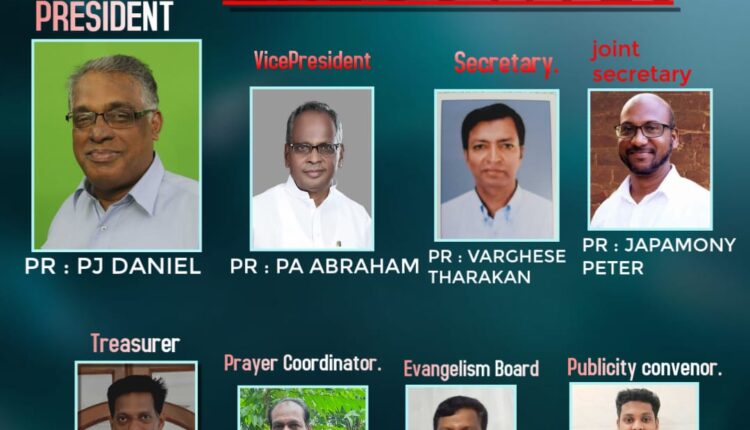 പ്രസിഡണ്ടായി പാസ്റ്റർ പി ജെ ഡാനിയൽ, വൈസ് പ്രസിഡന്റ് പാസ്റ്റർ പി . എ എബ്രഹാം, സെക്രട്ടറിയായി പാസ്റ്റർ. വർഗീസ് തരകൻ, ജോയിൻ സെക്രട്ടറി പാസ്റ്റർ ജപമാണി പീറ്റർ, ട്രഷററായി സുവിശേഷകൻ. മനു, പ്രയർ കൺവീനറായി പാസ്റ്റർ രാജു തോമസ്,ഇവാഞ്ചലിസം ബോർഡ് സുവിശേഷകൻ മോഹൻദാസ്,പബ്ലിസിറ്റി കൺവീനറായി സുവിശേഷകൻ ജസ്റ്റിൻ രാജിനെയും തിരഞ്ഞെടുത്തു.