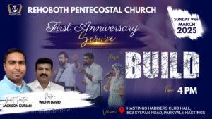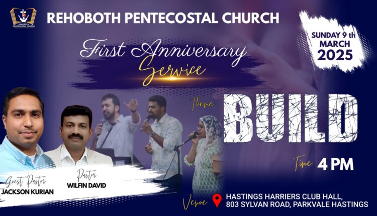 ന്യൂസിലന്റിലെ ഹേസ്റ്റിംഗ്സ് രെഹോബോത്ത് പെന്തക്കോസ്തു ചർച്ചിന്റെ ഒന്നാം വാർഷികം 2025 മാർച്ച് 9 ന്.