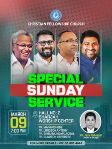 Dr. M. A. Varghese to Preach at Sharjah Worship Centre Today – March 9
