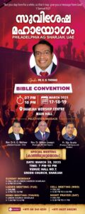 ഫിലദെൽഫിയ ഏ ജി ചർച്ച് ഷാർജ യുടെ അഭിമുഖ്യത്തിൽ നടക്കുന്ന സുവിശേഷമഹാ യോഗവും കാത്തിരിപ്പു യോഗവും മാർച്ച് 17 മുതൽ