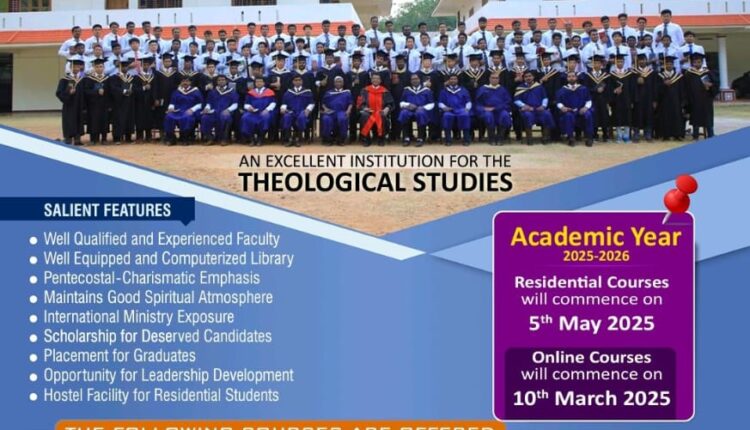 ആയൂർ: ട്രൂലൈറ്റ് ഫോർ ഏഷ്യാ ബിബ്ലിക്കൽ സെമിനാരിയുടെ 2025-2026 അക്കാദമിക് വർഷത്തെ ഓൺലൈൻ ക്ലാസ്സുകൾ 2025 മാർച്ച് മാസം 10-ാം തിയതിയും റസിഡൻഷ്യൽ ക്ലാസ്സുകൾ 2025 മെയ് മാസം 5-ാം തിയതിയും ആരംഭിക്കുന്നു.