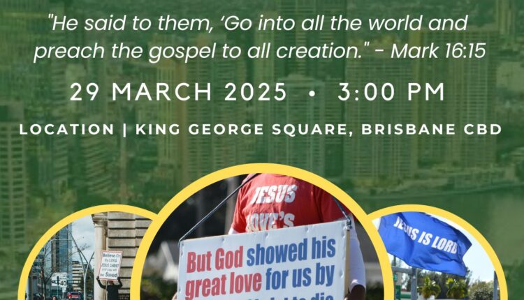 Don’t miss this chance to be part of a transformative experience. Let’s come together, step out in faith, and glorify God’s name in the streets of Brisbane. Join us on Saturday for an extraordinary opportunity to touch lives and proclaim God’s word.