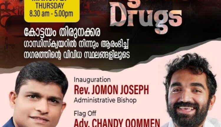 കോട്ടയം ചർച്ച് ഓഫ് ഗോഡ് കേരളാ റീജിയൻ സണ്ടേസ്കൂൾ വിഭാഗം മാർച്ച് 27 മുതൽ സംസ്ഥാന വ്യാപകമായി ലഹരിവിരുദ്ധ പ്രചാരണം ആരംഭിക്കും. ലഹരി ഉപയോഗത്തിൻ്റെ അപകടങ്ങളെക്കുറിച്ച് യുവാക്കളിൽ അവബോധം സൃഷ്ടിക്കുക എന്ന ലക്ഷ്യത്തോടെ നടക്കുന്ന പരിപാടിയിൽ Battle Against Drugs എന്ന തീം മുൻനിർത്തി വിവിധ പരിപാടികൾ ആസൂത്രണം ചെയ്തിട്ടുണ്ട്.