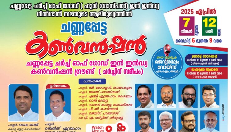 ചർച്ച് ഓഫ് ഗോഡ് ഇൻ ഇന്ത്യ, ചണ്ണപ്പേട്ട കൺവെൻഷൻ ഏപ്രിൽ 7 മുതൽ.