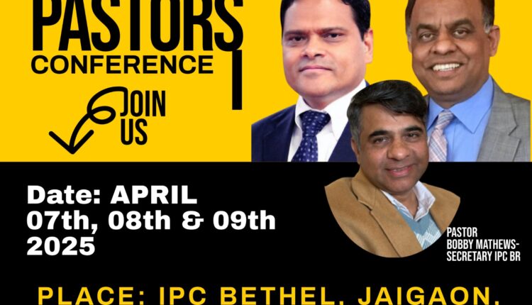 ജയ്ഗോൺ: ഐ.പി.സി ഭൂട്ടാൻ റീജിയൻ 2025ലെ പാസ്റ്റേഴ്സ് കോൺഫെറൻസ് ഈ വർഷം രണ്ട് വ്യത്യസ്ത സ്ഥലങ്ങളിൽ വച്ച് നടത്തുവാൻ തീരുമാനിച്ചിരിക്കുന്നു. ബംഗാളിന്റെ തെക്കൻ ജില്ലകളിൽ ഉള്ള സഭാശുശ്രൂകന്മാരെയും ഭാര്യമാരെയും ഉൾപ്പെടുത്തിക്കൊണ്ട് രണ്ടു ദിവസം നീണ്ടുനിൽക്കുന്ന സമ്മേളനം ഏപ്രിൽ 3, 4 തീയതികളിൽ തക്കൂർപൂർ എന്ന സ്ഥലത്തുള്ള ഐ.പി.സി ശാലേം ഗ്ലോബൽ സെന്ററിൽ വച്ച് നടത്തപ്പെട്ടു.