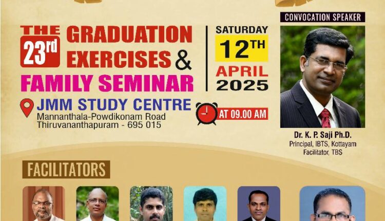 ട്രിവാൻഡ്രം ബിബ്ലിക്കൽ സെമിനാരി 23മത് ബിരുദദാന സർവ്വീസും ഫാമിലി കോൺഫറന്സും ഏപ്രിൽ 12 ന്