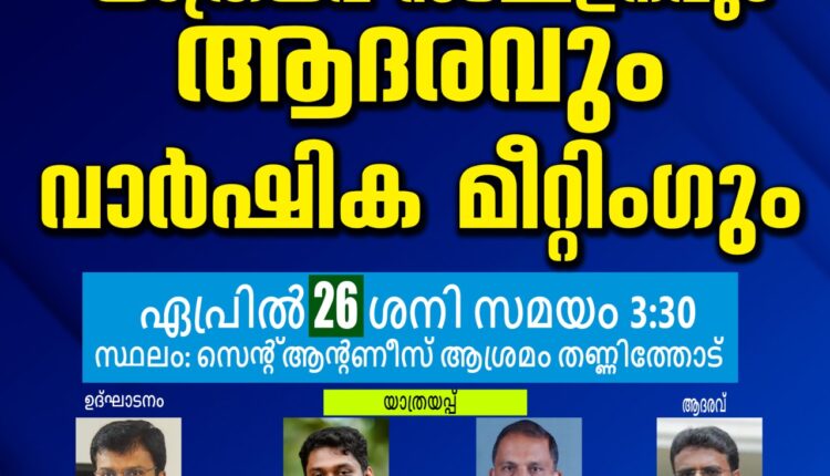 തണ്ണിത്തോട്: കേരള കൗൺസിൽ ഓഫ് ചർച്ചസ് തണ്ണിത്തോട് സോൺ വാർഷിക മീറ്റിംഗ്ഗും സോണിൽ നിന്ന് സ്ഥലം മാറി പോകുന്ന വൈദികർക്ക് യാത്രയപ്പും സോണിൽ പുതിയതായി പട്ടം കിട്ടിയ വൈദികന് ആദരവും ഏപ്രിൽ 26 തിയതി ശനിയാഴ്ച വൈകിട്ട് 3:30 ന് തണ്ണിത്തോട് സെൻ്റ് ആൻ്റണീസ് ആശ്രമത്തിൽ വെച്ച് നടക്കും.
