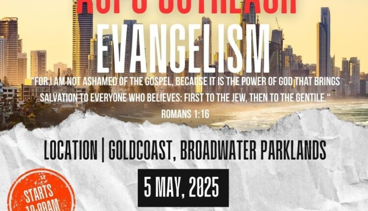 Australian United Pentecostal Churches (AUPC) is conducting a major Outreach Evangelism event on 5 May 2025 at Broadwater Parklands, Gold Coast. Starting from 10:00 AM, this dynamic outreach aims to share the powerful message of the Gospel with the community.