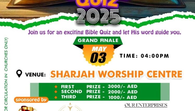 പി.വൈ.പി.എ യൂഎഇ റീജിയൻ ‘ബറക്ക’ മെഗാ ബൈബിൾ ക്വിസ് 2025 – ഗ്രാൻഡ് ഫിനാലെ 2025 മെയ് 3, ശനിയാഴ്ച.