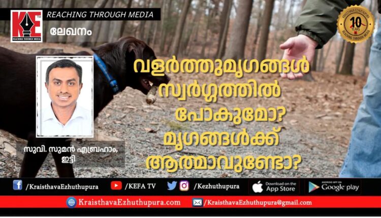 ലേഖനം: വളര്ത്തുമൃഗങ്ങൾ സ്വര്ഗ്ഗത്തിൽ പോകുമോ? മൃഗങ്ങള്ക്ക് ആത്മാവുണ്ടോ? | സുവി. സുമൻ എബ്രഹാം, ഇട്ടി