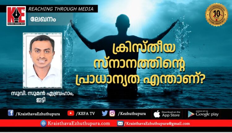 ലേഖനം: ക്രിസ്തീയ സ്നാനത്തിന്റെ പ്രാധാന്യത എന്താണ്? | പാ. സുമൻ എബ്രഹാം ഇട്ടി