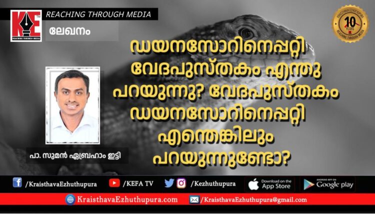 ഡയനസോറിനെപ്പറ്റി വേദപുസ്തകം എന്തു പറയുന്നു? വേദപുസ്തകം ഡയനസോറിനെപ്പറ്റി എന്തെങ്കിലും പറയുന്നുണ്ടോ? | പാസ്റ്റർ സുമൻ എബ്രഹാം ഇട്ടി