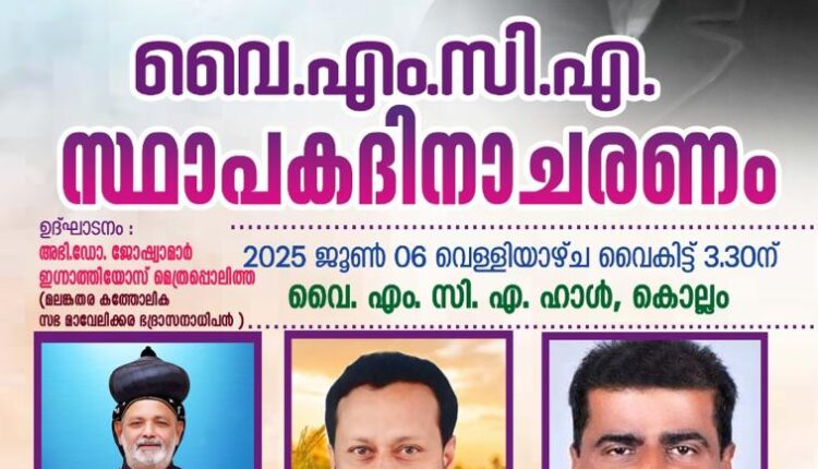 വൈഎംസിഎ സ്ഥാപക ദിനാചരണവും ലഹരി വിരുദ്ധ ക്യാമ്പയിൻ ഉദ്ഘാടനവും ജൂൺ 6ന് കൊല്ലം വൈ.എം.സി.എ.യിൽ