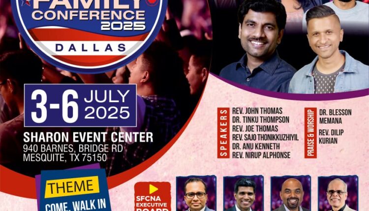 എസ്.എഫ്.സി.എൻ.എ19th ഫാമിലി കോൺഫറൻസ് ഡാളസിൽ ജൂലൈ 3 മുതൽ 6 വരെ