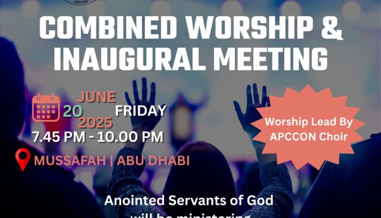 അബുദാബി : അബുദാബി പെന്തക്കോസ്തൽ ചർച്ചസ് കോൺഗ്രിഗേഷൻ 2025 – 26 ( APCCON )പ്രവർത്തനോദ്ഘാടനവും സംയുക്ത ആരാധനയും ജൂൺ 20 വെള്ളിയാഴ്ച വൈകിട്ട് 07:45 മുതൽ 10:00 മണി വരെ അബുദാബി മുസഫയിൽ വച്ച് നടത്തപ്പെടും.പ്രസ്തുത മീറ്റിംഗിൽ അപ്കോൺ ക്വയർ ഗാനങ്ങൾ ആലപിക്കും.അനുഗ്രഹീത ദൈവദാസന്മാർ ദൈവവചനത്തിൽ നിന്നും ശുശ്രൂഷിക്കും.മീറ്റിങ്ങിന് അപ്കോൺ പ്രസിഡന്റ് ഡോ.അലക്സ് ജോൺ , ഉപാധ്യക്ഷൻ ഡോ.ഷിബു വർഗീസ്, സെക്രട്ടറി ബ്രദർ ജോ സി മാത്യു, ട്രഷറർ ബ്രദർ ജോൺ മാത്യു, എന്നിവർ നേതൃത്വം നൽകും.