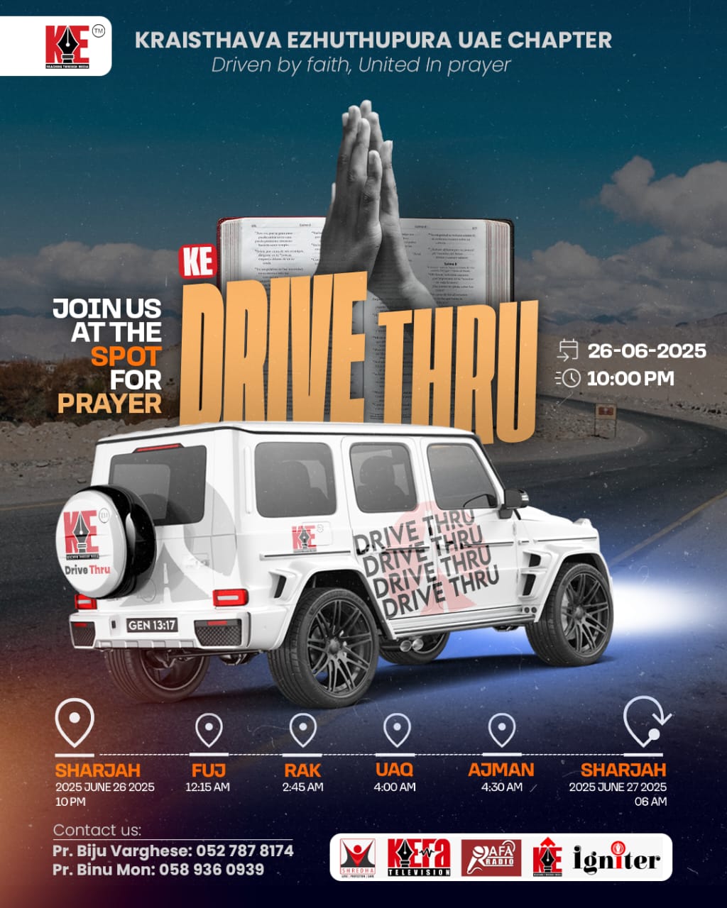 ക്രൈസ്തവ എഴുത്തുപുര യു എ ഈ ചാപ്റ്റർ പ്രയർ ഡ്രൈവ് – KE ഡ്രൈവ് ത്രു – ഈ മാസം 26 ന്