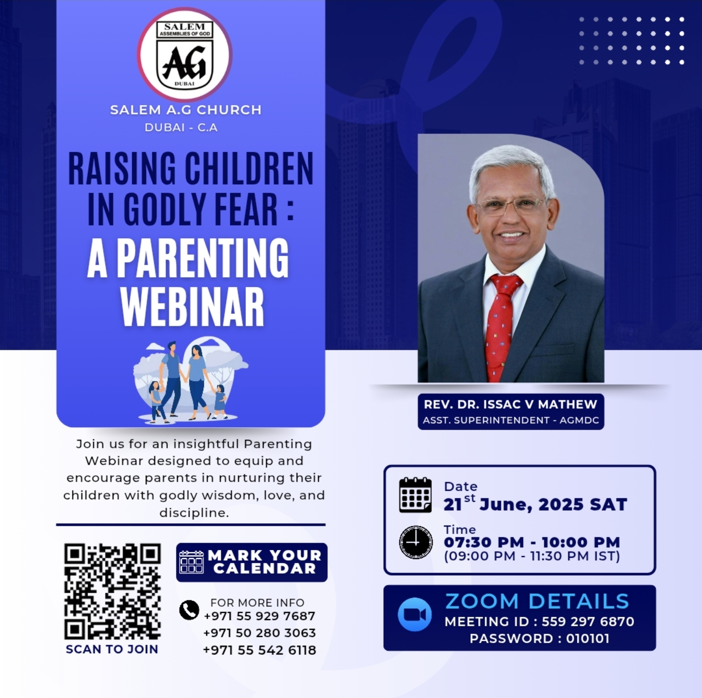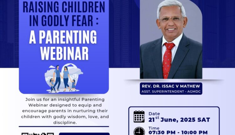 ദുബായ് ശാലേം എ.ജി – സി.എ യുടെ നേതൃത്വത്തില് സൂം പ്ലാറ്റ്ഫോമിൽ ഒരുക്കുന്ന പേരൻ്റിംഗ് സെമിനാർ ജൂൺ 21 ന്.