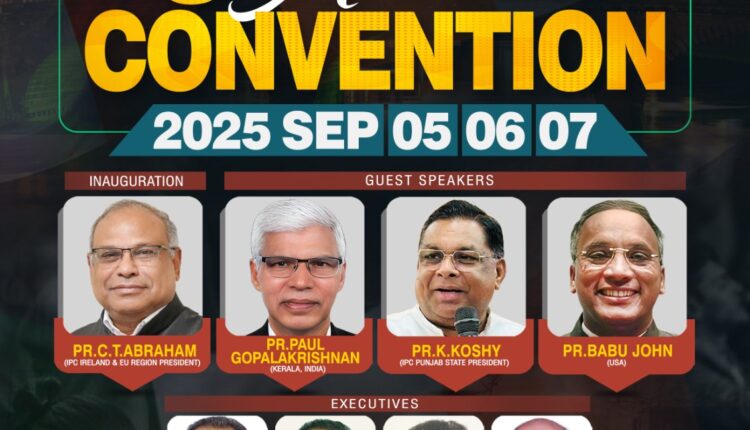ഐ.പി.സി അയർലൻഡ് & ഇ യൂ റീജിയന്റെ മൂന്നാമത് വാർഷിക കൺവെൻഷൻ സെപ്റ്റംബർ 5 മുതൽ