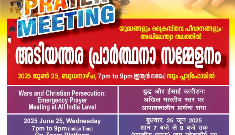 യുദ്ധങ്ങളും – ക്രൈസ്തവ പീഢനങ്ങളും: അടിയന്തര പ്രാർത്ഥനാ സമ്മേളനം ജൂൺ 25 ന് സൂം പ്ലാറ്റ്ഫോമിൽ