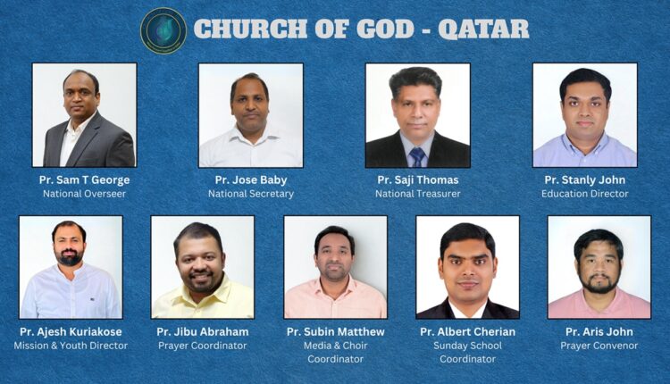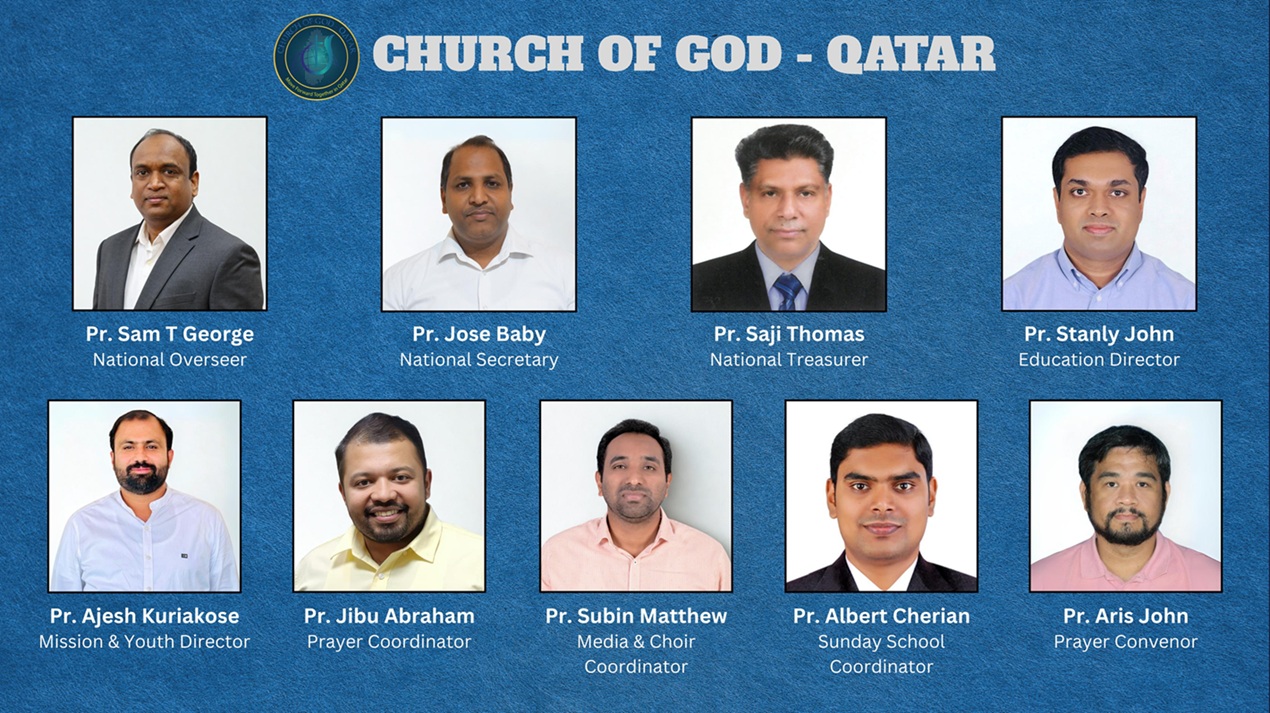ചർച്ച് ഓഫ് ഗോഡ്-ഖത്തറിന്റെ പുതിയ ഭാരവാഹികൾ- Pr. സാം ടി ജോർജ് (നാഷണൽ ഓവർസിയർ), Pr. ജോസ് ബേബി (നാഷണൽ സെക്രട്ടറി), Pr. സജി തോമസ് (നാഷണൽ ട്രഷറർ), Pr. സ്റ്റാൻലി ജോൺ (വിദ്യാഭ്യാസ ഡയറക്ടർ), Pr. അജേഷ് കുര്യാക്കോസ് (മിഷൻ/യൂത്ത് ഡയറക്ടർ), Pr. ജിബു (പ്രാർത്ഥനാ കോ-ഓർഡിനേറ്റർ), Pr. ആൽബർട്ട് ചെറിയാൻ (സൺഡേ സ്കൂൾ കോ-ഓർഡിനേറ്റർ), Pr. സുബിൻ മാത്യു (മീഡിയ കോ-ഓർഡിനേറ്റർ), Pr. അരിസ് ജോൺ (പ്രാർത്ഥനാ കൺവീനർ) എന്നിവർ. ഈ സംരംഭത്തിനായി നടപ്പിലാക്കിയ മുദ്രാവാക്യം ‘ഖത്തറിൽ ഒരുമിച്ച് മുന്നോട്ട് പോകുക’ എന്നതാണ്. ഐഡിസിസി ഖത്തറിലെ ഉദ്യോഗസ്ഥരും യോഗത്തിൽ പങ്കെടുക്കുകയും സംരംഭത്തിന് ആശംസകൾ അർപ്പിക്കുകയും ചെയ്തു