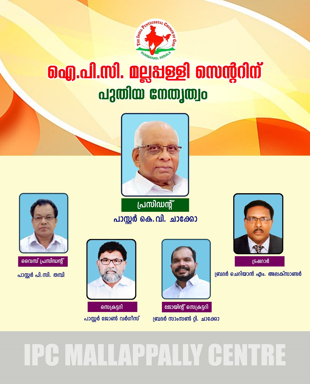 ഐ.പി.സി. മല്ലപ്പള്ളി സെന്ററിന് പുതിയ ഭരണ സാരഥ്യം