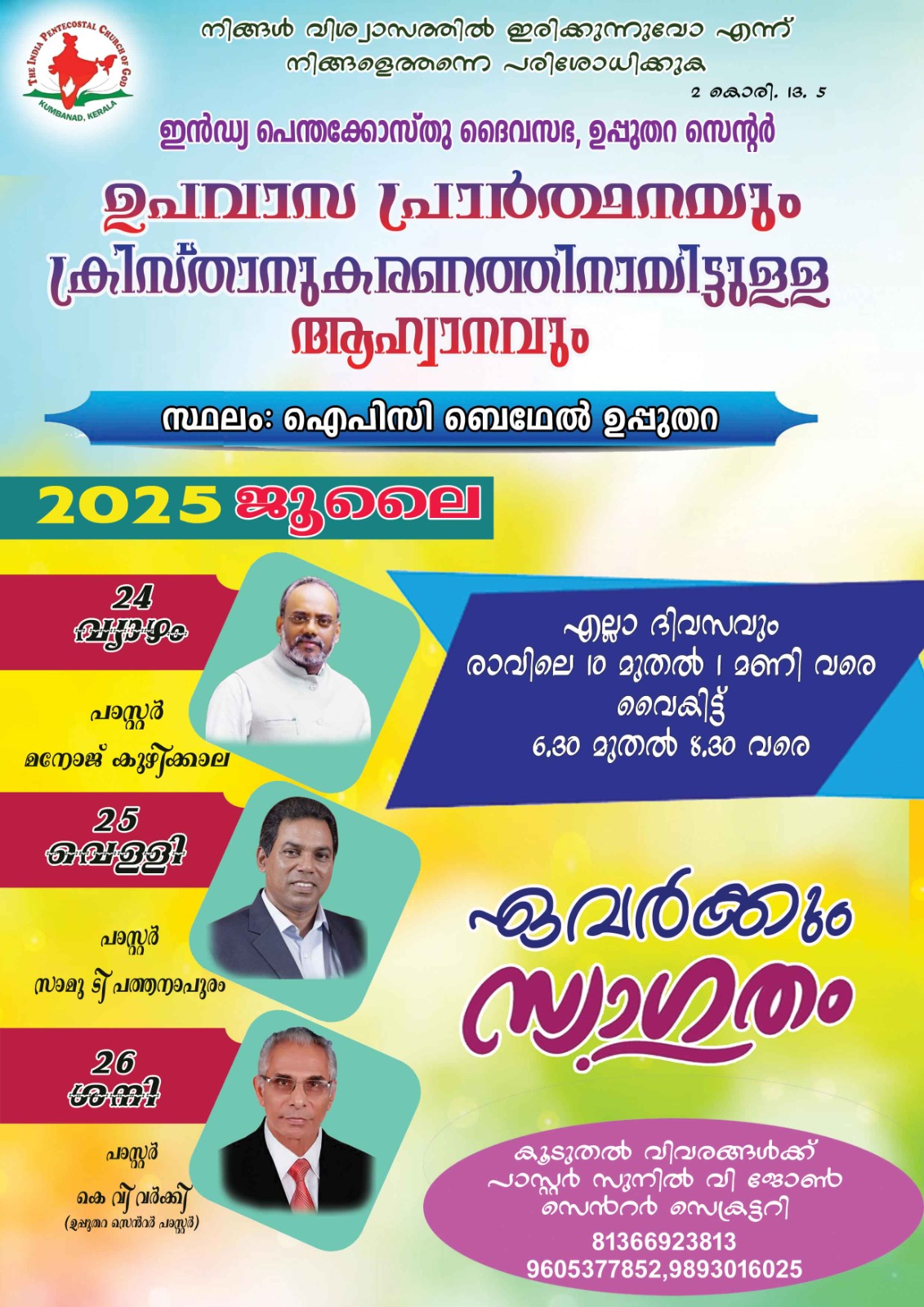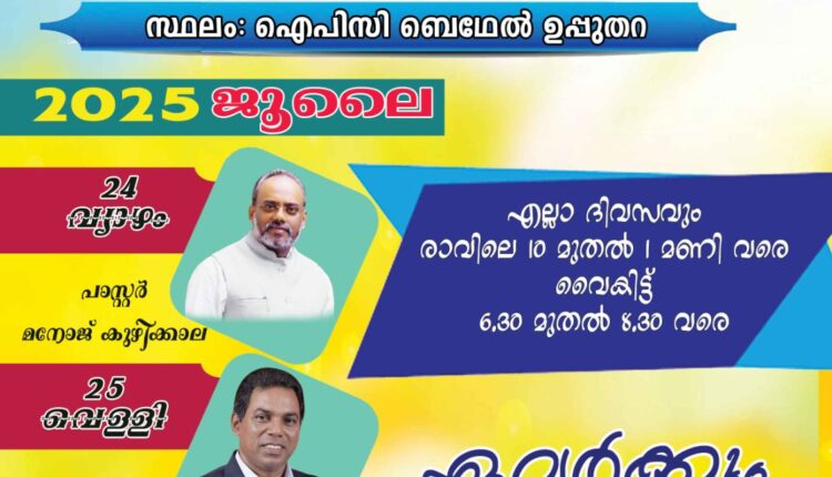 ഐ.പി.സി ഉപ്പുതറ സെന്റർ ഉപവാസപ്രാർത്ഥന ജൂലൈ 24 മുതൽ