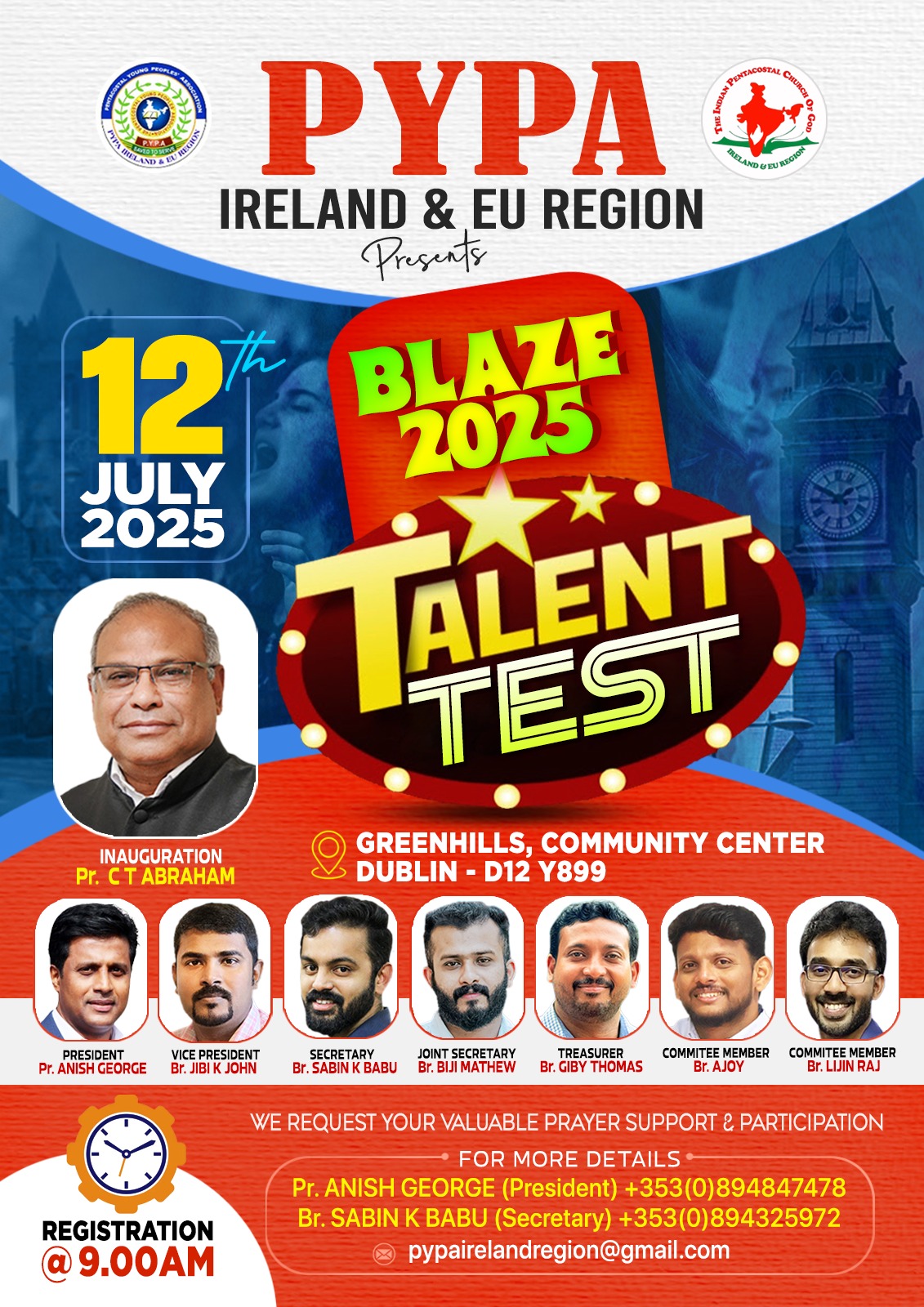 ഐപിസി അയർലൻഡ് & ഇ യു റീജിയന്റെ പി വൈ പി എ ടാലന്റ് ടെസ്റ്റ് ജൂലൈ 12 ന് ഡബ്ലിനിൽ.